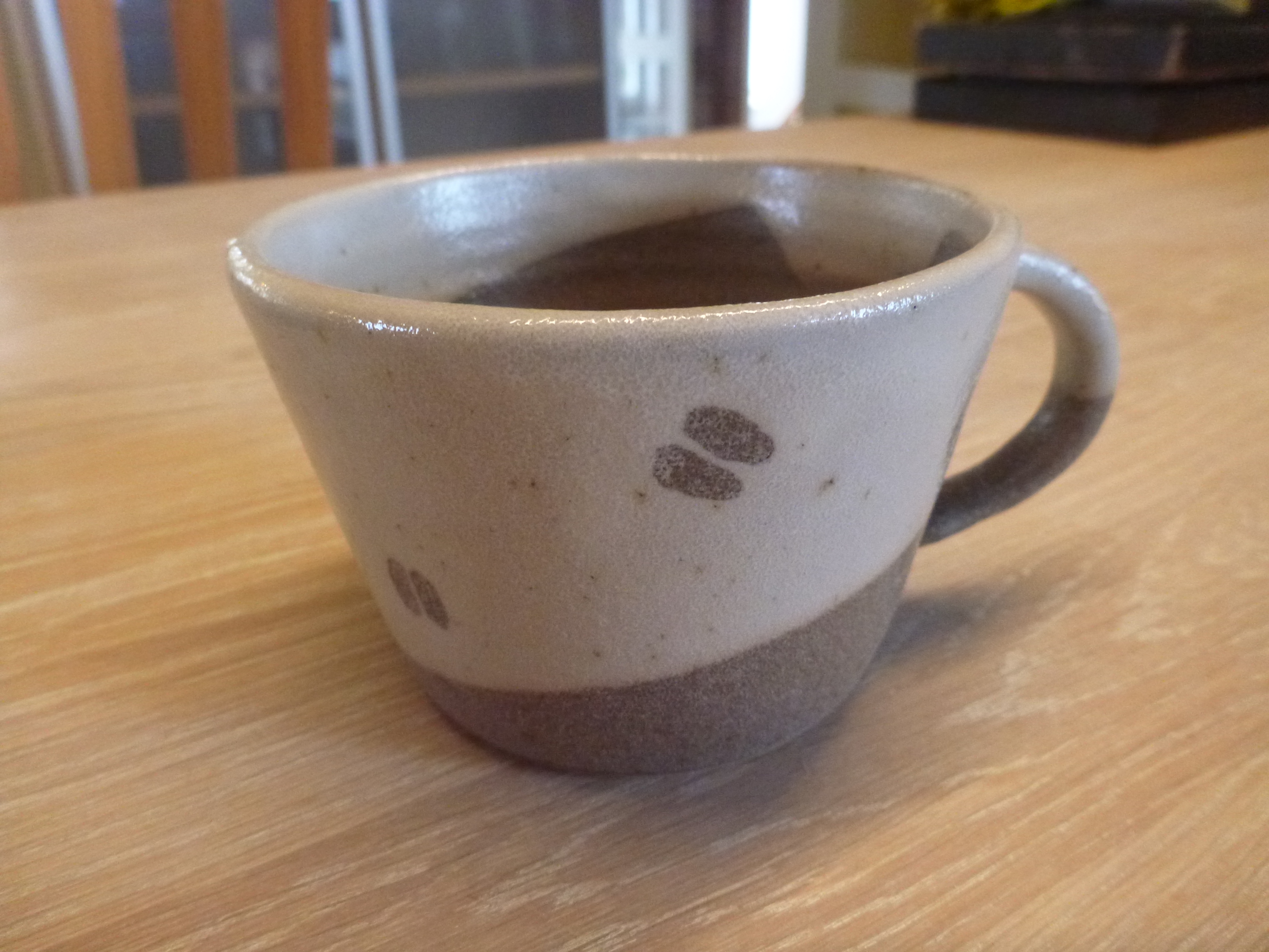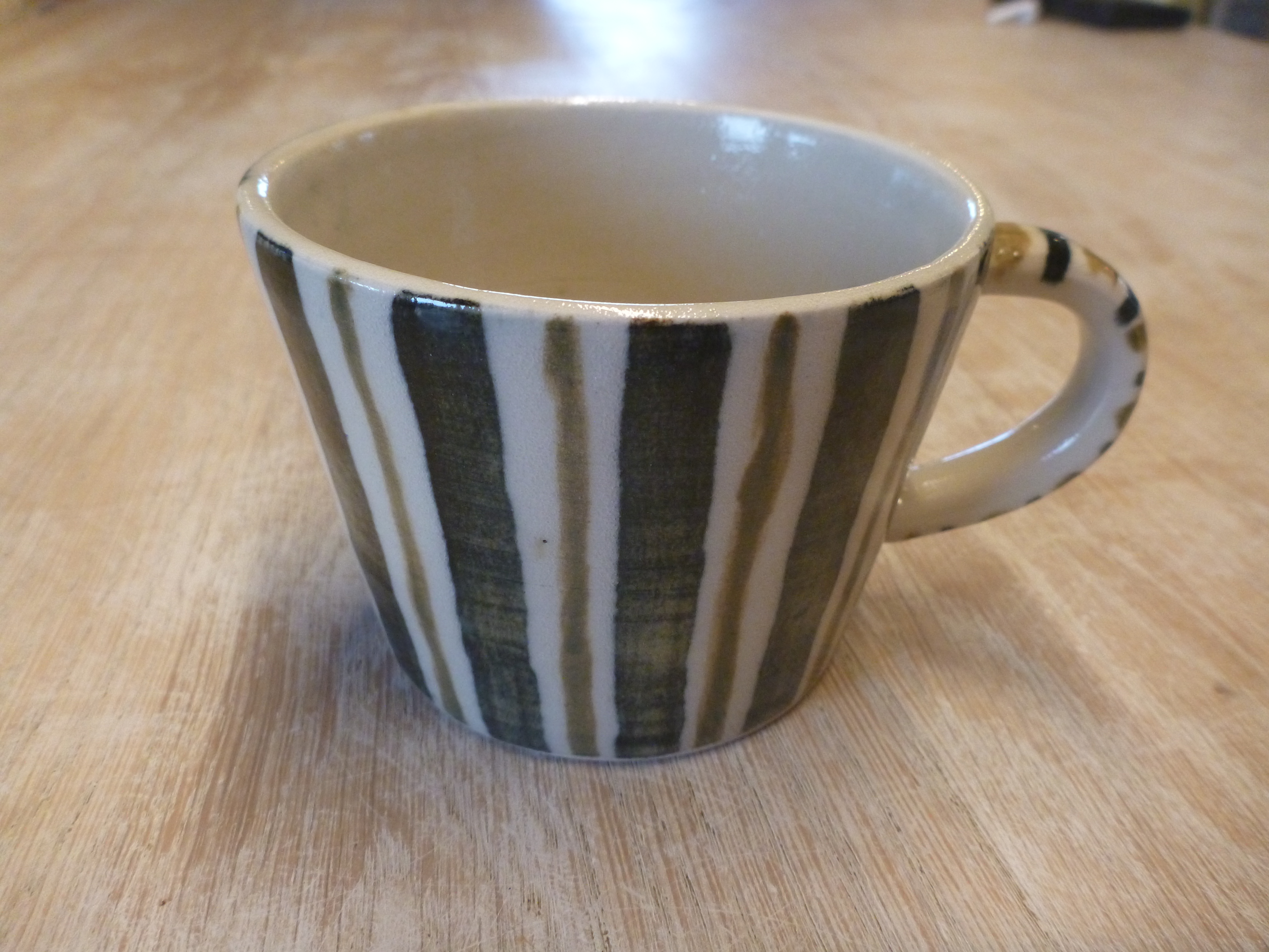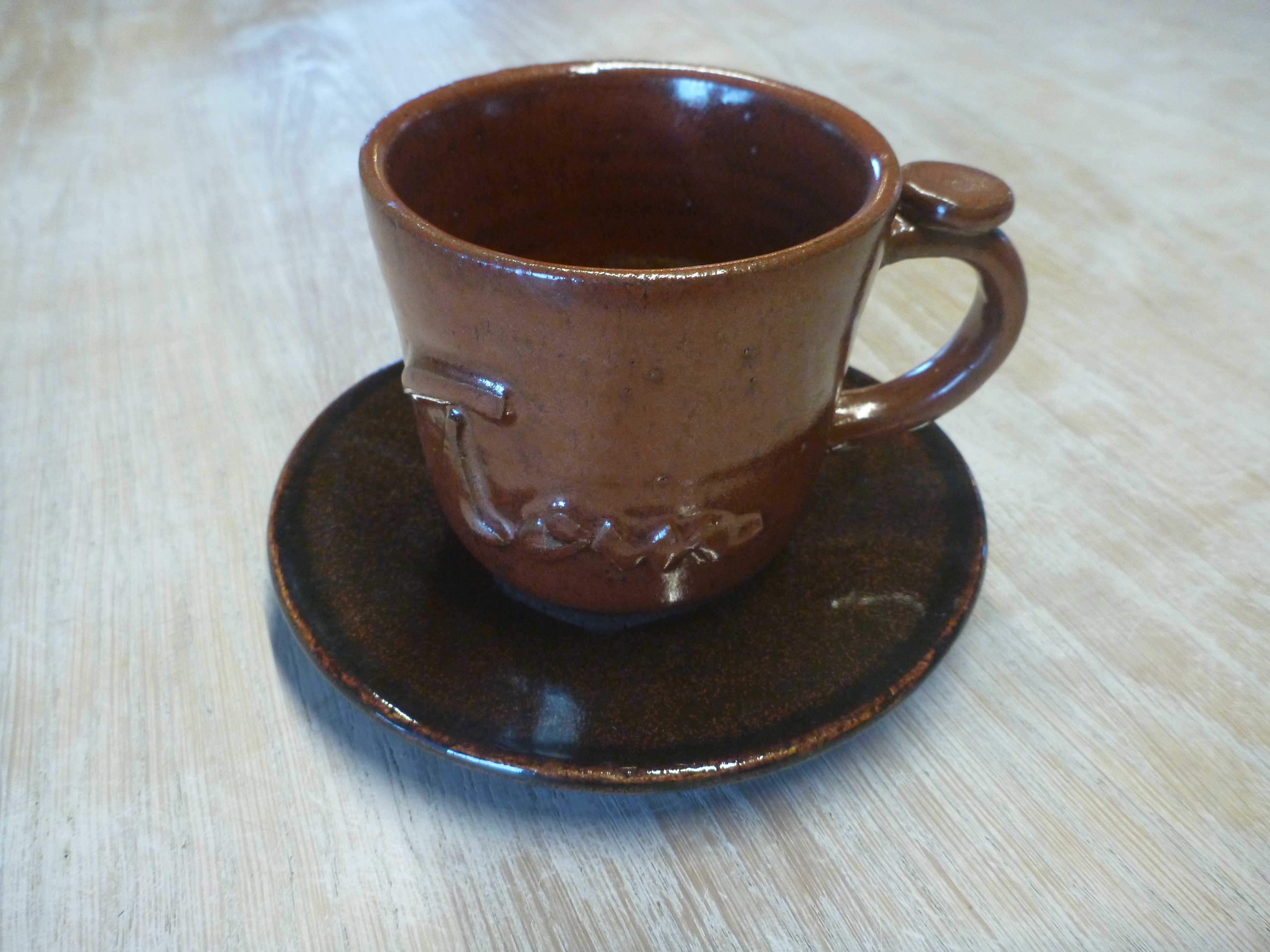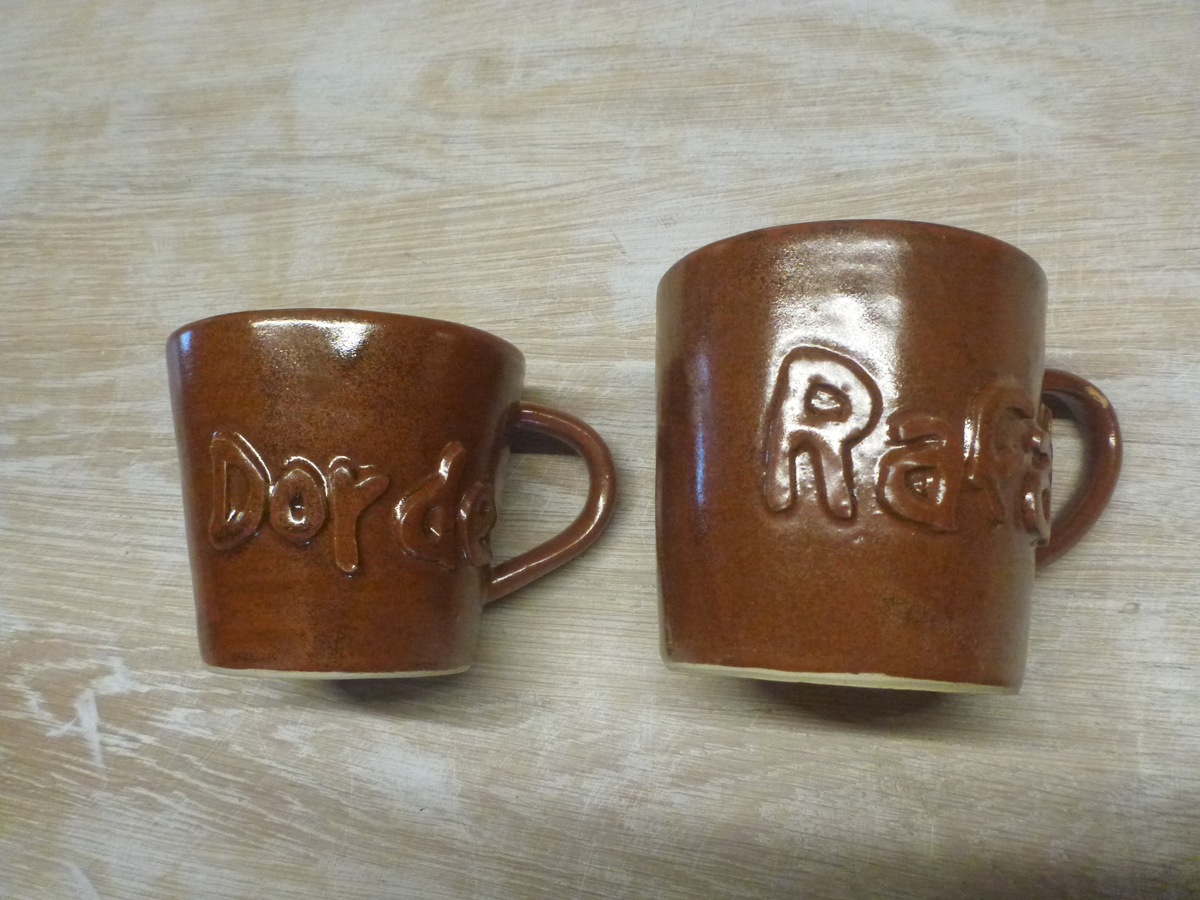 Mugs for your favorite hot beverage. When you order a mug, you can specify a name - your own, a friend or family member, for example - which will be added in relief before firing. Consequently, you should allow up to two weeks for delivery, as the mugs are made personally for you from scratch.